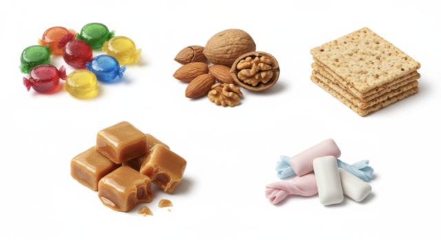 また、ガムを噛む行為自体が、装置に不必要なストレスを与えるため、矯正中は避けるべきです。キャラメルも粘着性が高く、矯正装置に悪影響を与えるため推奨されません。キャラメルを食べることで、装置が外れるリスクが高まります。