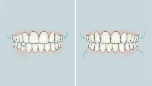 後戻りが起こる原因は、単に装着時間の不足だけではありません。日常生活の中で無意識に行っている癖も大きく影響します。舌で歯を押す癖、頬杖をつく習慣、歯ぎしりや食いしばりなどは、歯に持続的な力を加えるため、後戻りを促進してしまいます。また、親知らずが横向きに生えている場合、前方の歯を押す力が働き、歯列全体を乱す原因となることもあります。