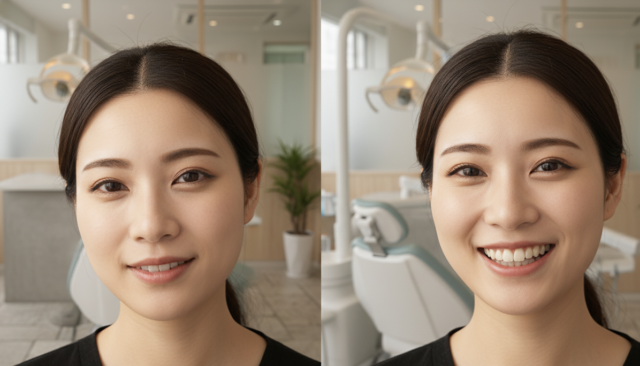 このカーブが下唇のラインに沿って滑らかに弧を描いていると、口元が美しく見えます。歯列矯正によって前歯の傾きや長さのバランスが整い、自然で美しいスマイルラインが完成するため、結果として写真映えする笑顔や、より明るい印象につながります。